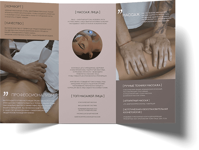 После того, как клиент принял предложенный вариант логотипа, мы отдельно отрисовали несколько носителей: вывеску, прайс-листы, буклеты, флаеры, а также детали интерьера, соответствующие идеологии студии (постеры на стены).