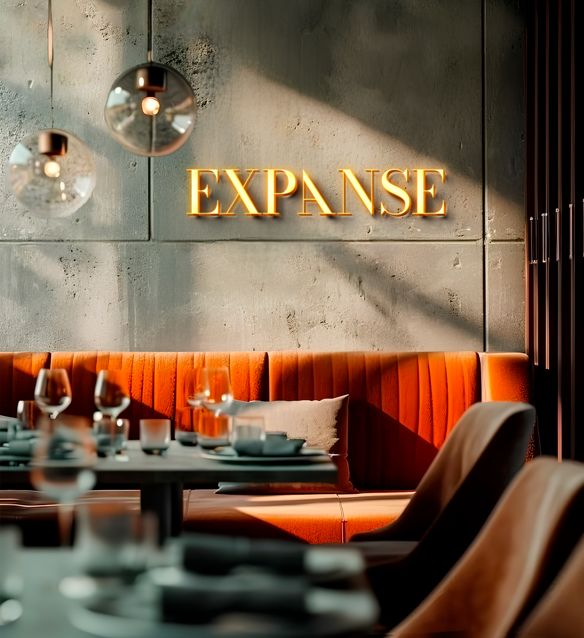 Цветовая гамма — природная, сдержанная, подчеркивающая эксклюзивность ресторана.